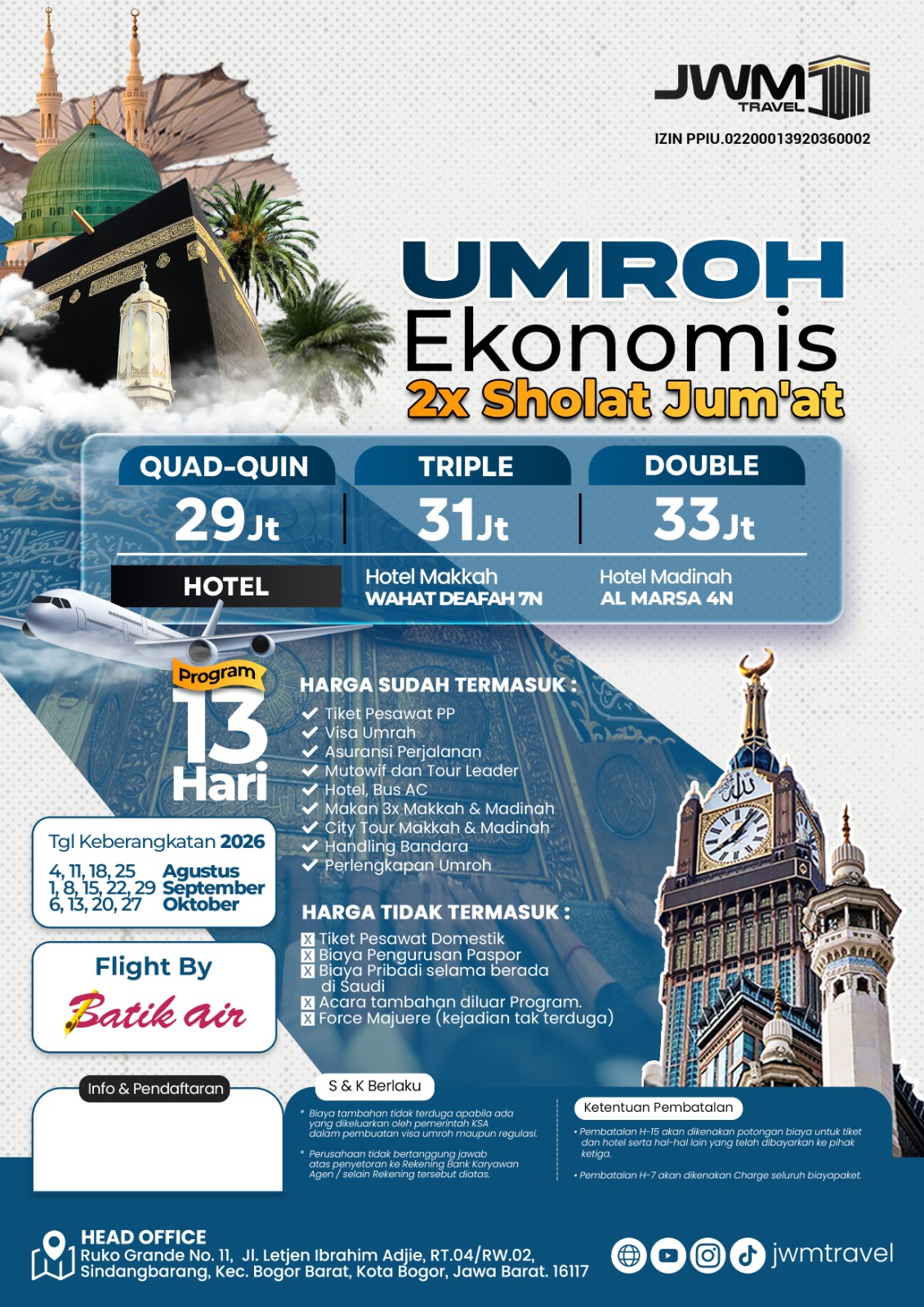 UMROH EKONOMIS 13 HARI - 27 OKTOBER 2026 - (UE-UMROH EKO 2026)